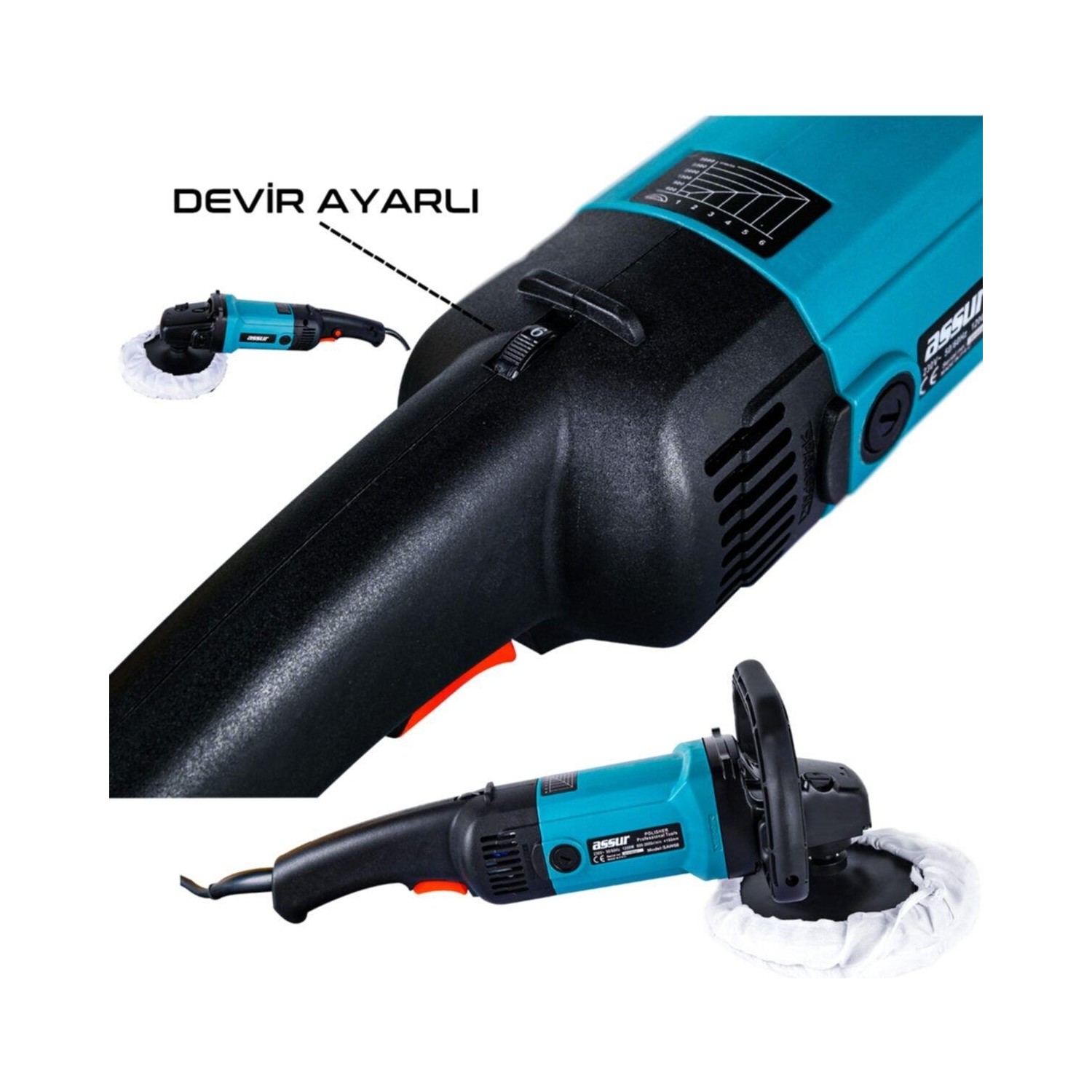 Hırdavat Garajı Assur Profesyonel Devir Ayarlı 1300 Watt 180 mm 6 Kademeli Polisaj Makinesi + Pasta Cila Kiti
