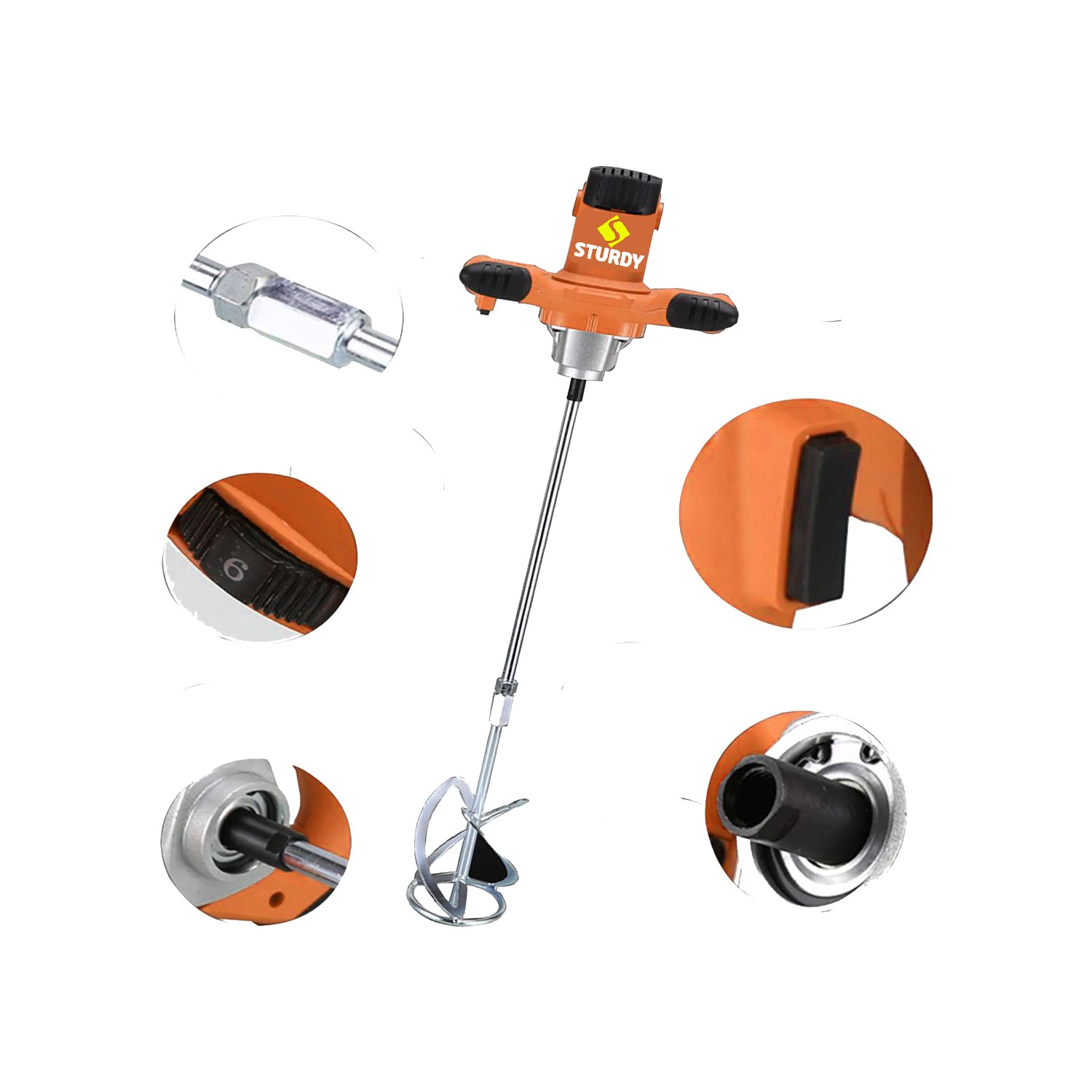 Sturdy Power Tools 1400 Watt Turuncu 6 Kademe Hız Ayarı Boya ve Harç Mikseri Karıştırıcı
