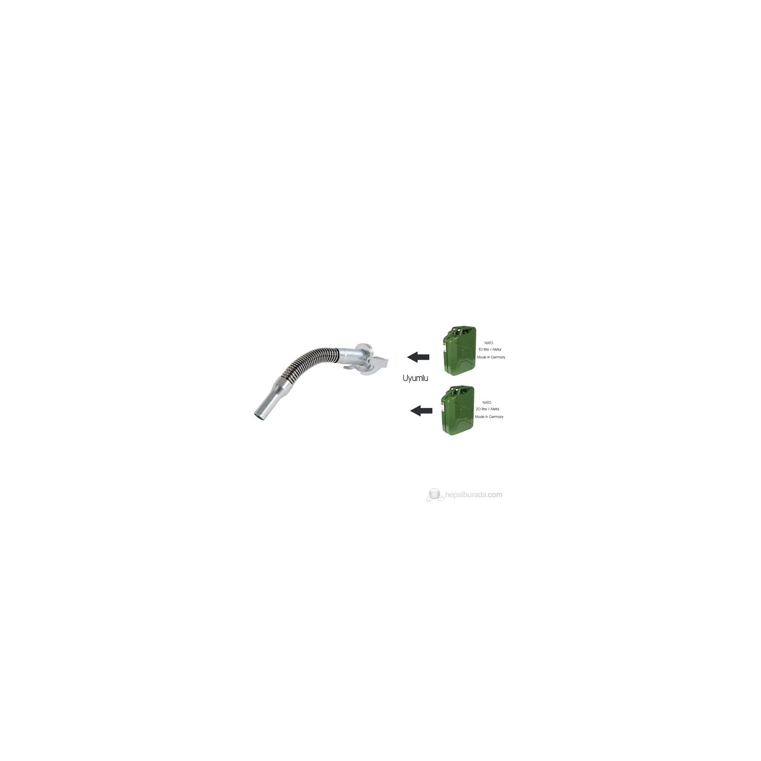 - Metal benzin bidonlarında kullanılabilen esnek flexibel ağız uzatma aparatı