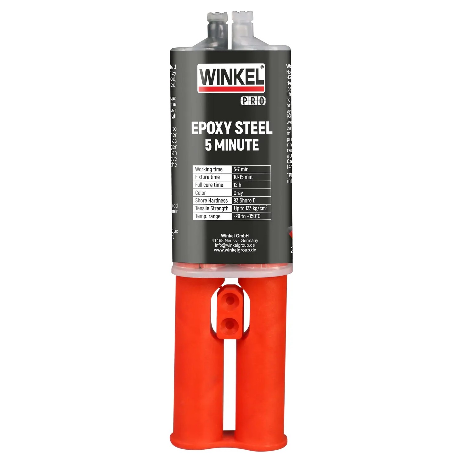 WINKEL PRO 5 Minute Steel Epoxy, 5 dakikada ilk tutuşunu yapan, 1 saat içinde fonksiyonel mukavemetine ulaşan, acil durumlar için geliştirilmiş metal dolgulu hızlı kürleşen epoksidir. Dolgu maddesi olarak çelik içerir. Üstün yapışma özelliğine ve kimyasal dirence sahiptir. Ahşap, seramik, metaller, fiberglas, cam, porselen ve beton gibi çok çeşitli malzemelerde kullanılabilir.